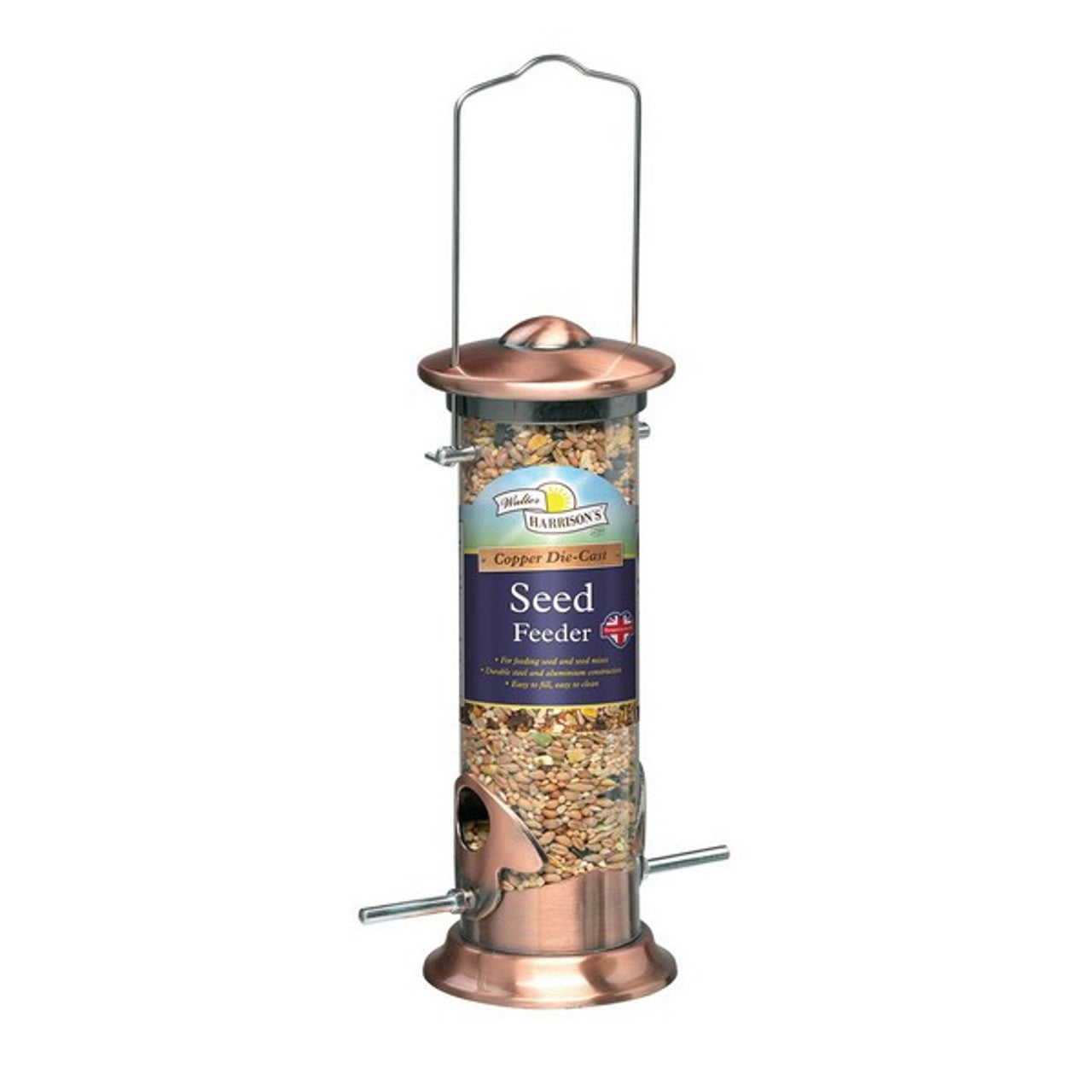 Harrisons Cast Copper Plated Seed Feeder has a distinctive copper plated die-cast zinc top and base